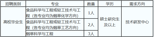 备注:1.烟草化学方向或烟草工艺方向体现为招聘专业所学科目内容。