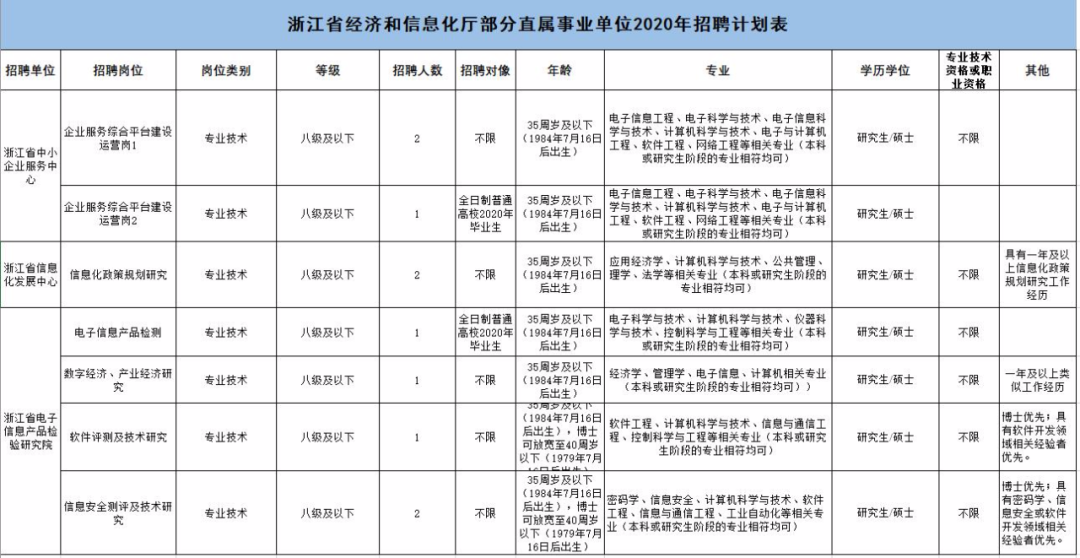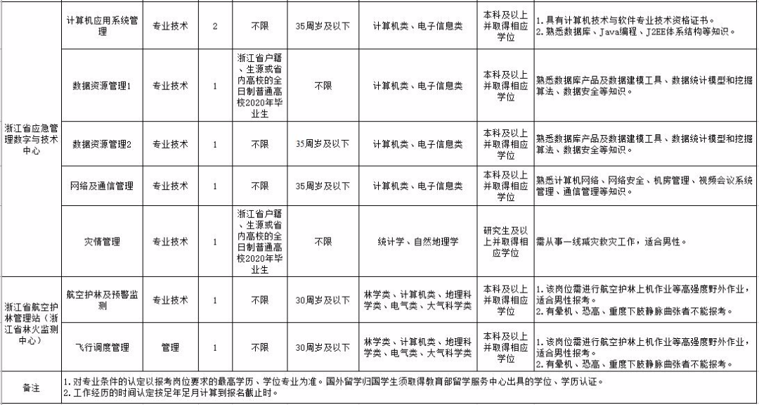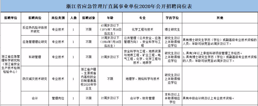 此次招聘的省应急管理厅下属事业单位共3家。本批次招聘需求为11个岗位13人。部分岗位招聘对象范围为浙江省户籍、生源或省内高校的全日制普通高校2020年毕业生,应于2020年9月底前毕业并取得相应学历学位。