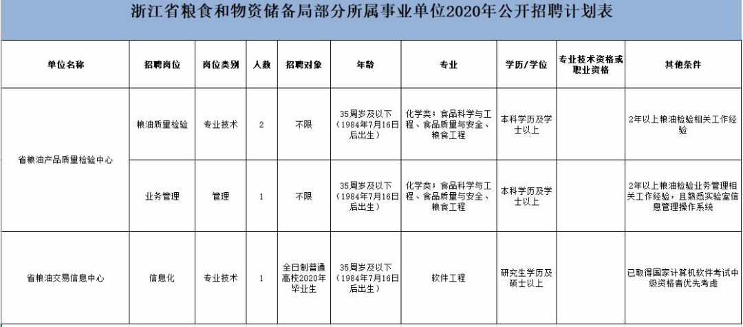 此次招聘的省粮食和物资储备局所属事业单位共2家。本批次招聘需求为3个岗位4人。省粮油交易信息中心信息化岗位招聘范围限定为全日制普通高校2020年毕业生。