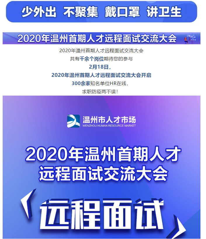 2月18日13:00-15:00,温州首期人才远程面试交流大会别错过!