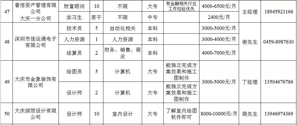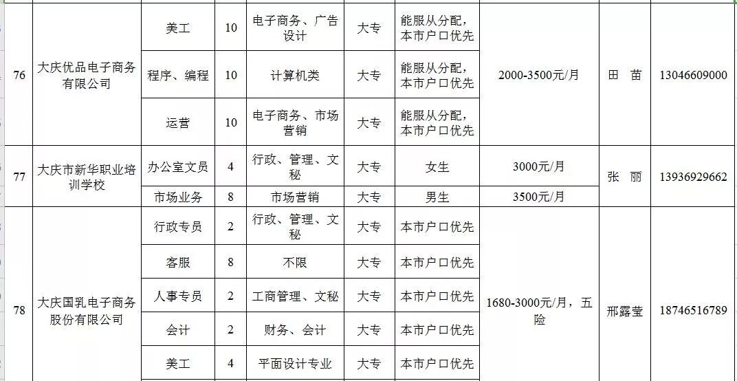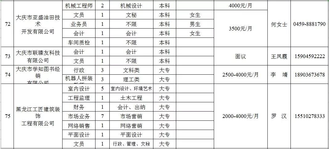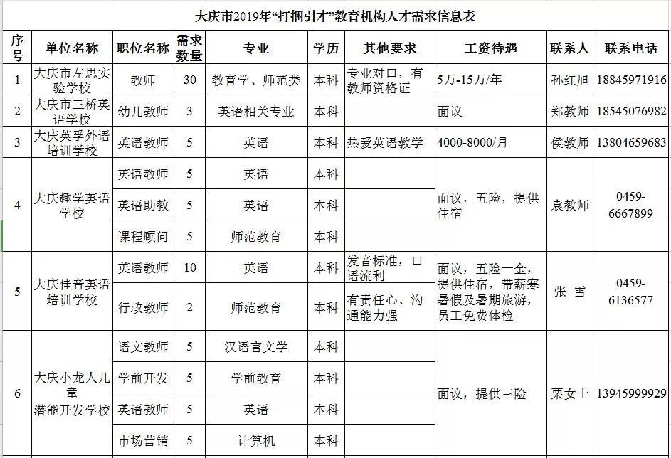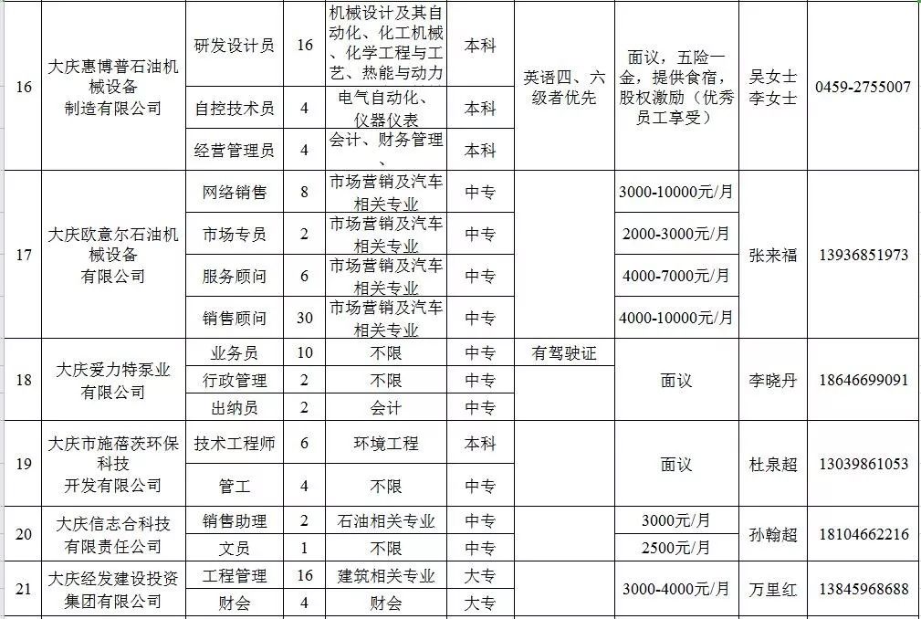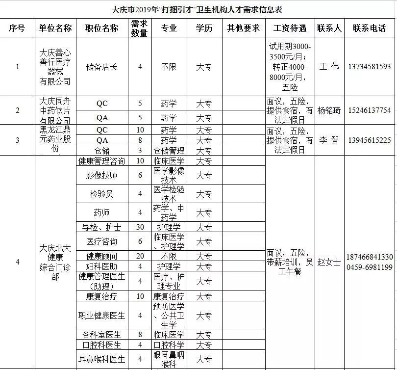 大庆市2019年“打捆引才” 人才需求发布 首批公布3579个岗位