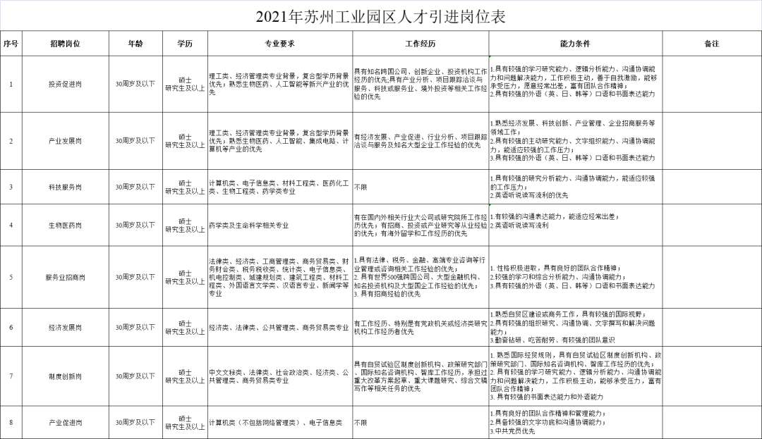 苏州工业园区是中国和新加坡两国政府间重要的合作项目,连续5年在国家级经济技术开发区考评中综合排名第一,被誉为“中国改革开放的重要窗口”和“国际合作的成功范例”。苏州工业园区党工委、管委会为苏州市委、市政府派出机构,为加强人才储备,现面向海内外引进20名左右具有国际化视野、专业化能力的优秀人才充实各管委会机关及相关单位,并提供具有竞争力的薪酬福利待遇及广阔的事业成长空间。