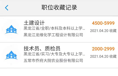收藏职位后,学生用户可以在微信端个人中心,查看已收藏职位记录,如下图所示: