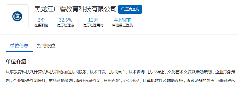 在申请记录的列表中,点击【职位名称】列的内容,进入职位详情,如下图所示: