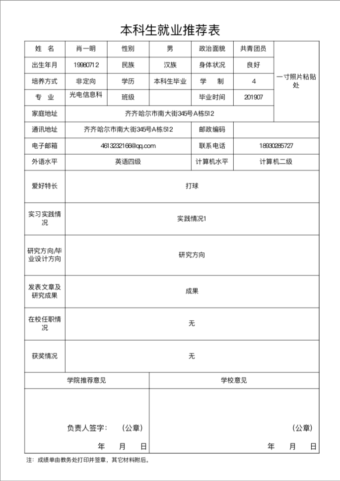 经学校审核通过后,可在推荐表申请页面点击【打印】按钮,在新页面浏览推荐表信息并打印,如下图所示: