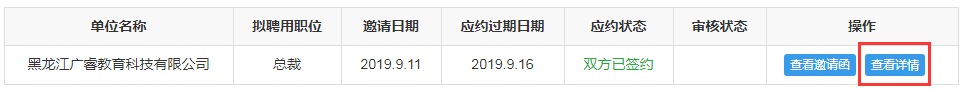 点击“单位名称”-【查看邀请函】,可以与用人单位进行签约,如下图所示: