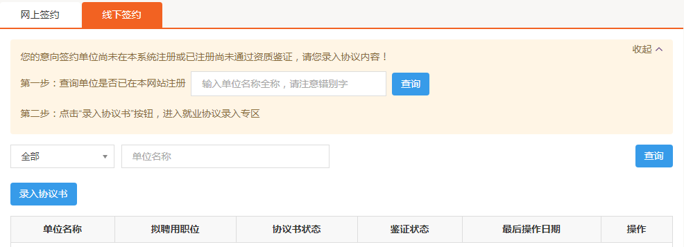 学生在签约中心-线下签约模块,点击【录入协议书】按钮,进入信息编辑界面,如下图所示: