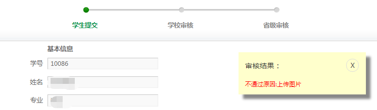 在详情里,除已经展示的且不可变更的信息外,学生需完善剩余信息。完善后点击最下方【提交】按钮提交到学校后台。如下图所示: