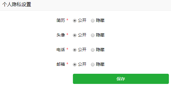 点击【个人隐私设置】,根据实际情况设定即可,如下图所示: