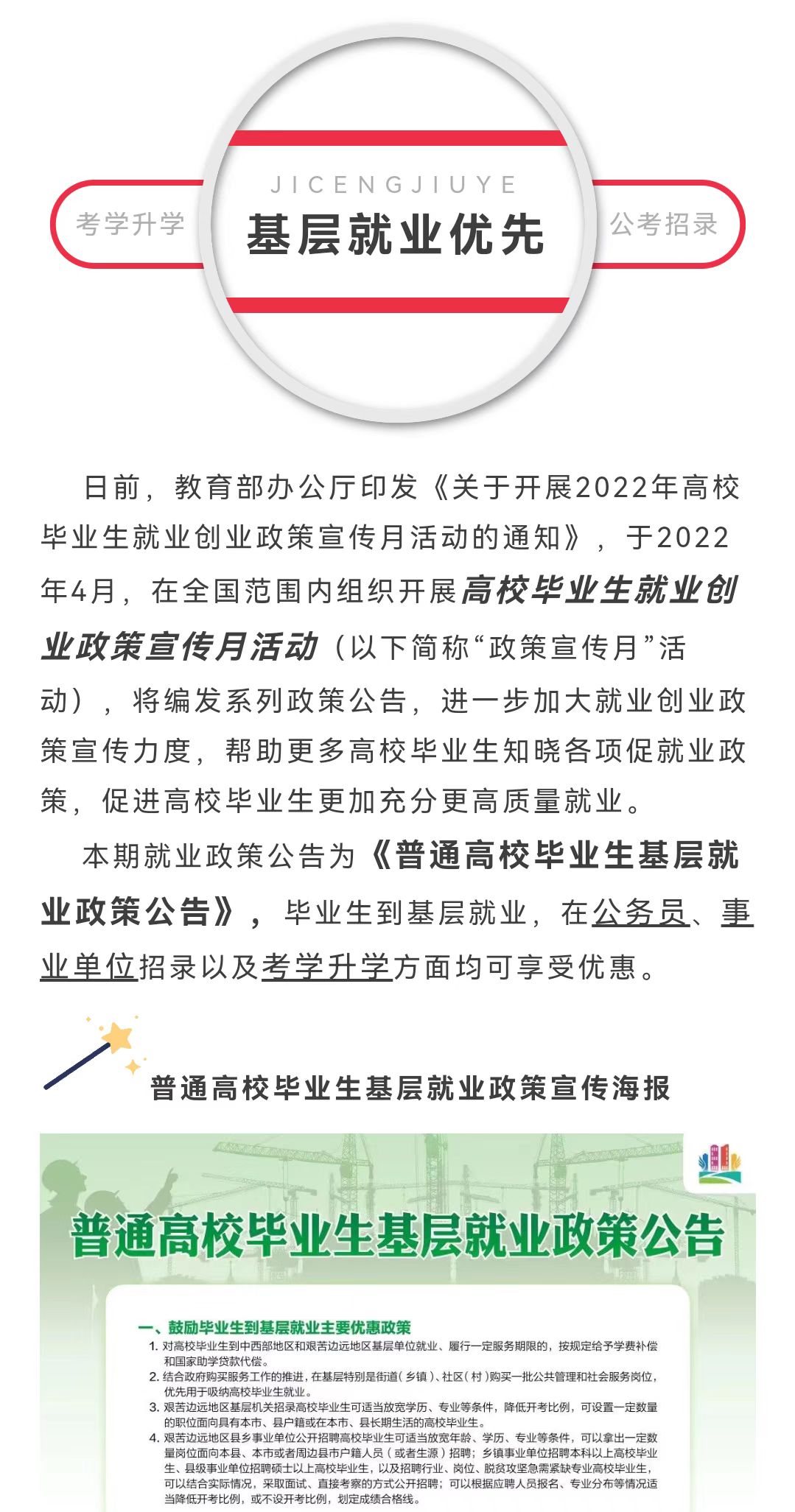 启动 || 教育部高校毕业生就业创业政策宣传月来了!首期:基层就业篇