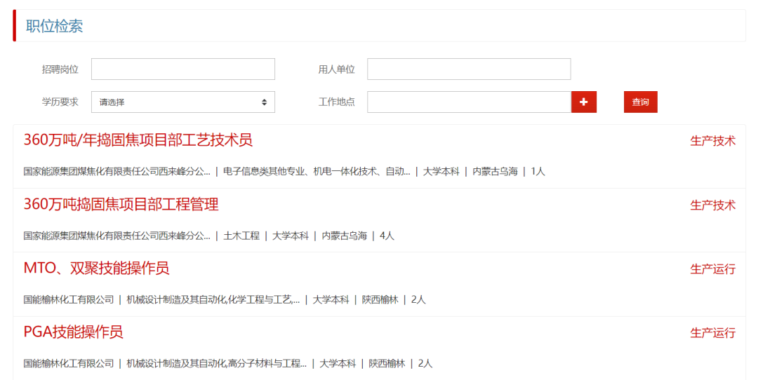 (一)系统报名1.查询职位。可同时登陆国家能源集团人力资源招聘网站(http://zhaopin.chnenergy.com.cn)校园招聘栏“三地”入口或中智招聘平台(www.ciiczhaopin.com)查询岗位信息。2.注册简历。实名注册,并填写个人简历。3.应聘职位。每名毕业生仅可应聘1个岗位,请慎重选择。如需更换岗位,须取消前次应聘,再发送新的求职申请。