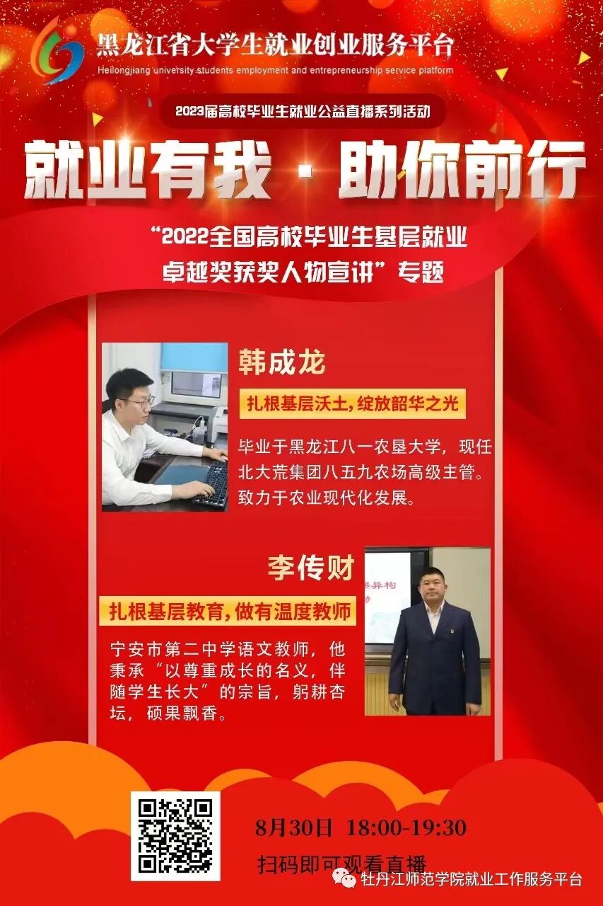 8月30日(周三)“就业有我 助你前行”公益直播课推出“2022全国高校毕业生基层就业卓越奖获奖人物宣讲”专题第五讲。