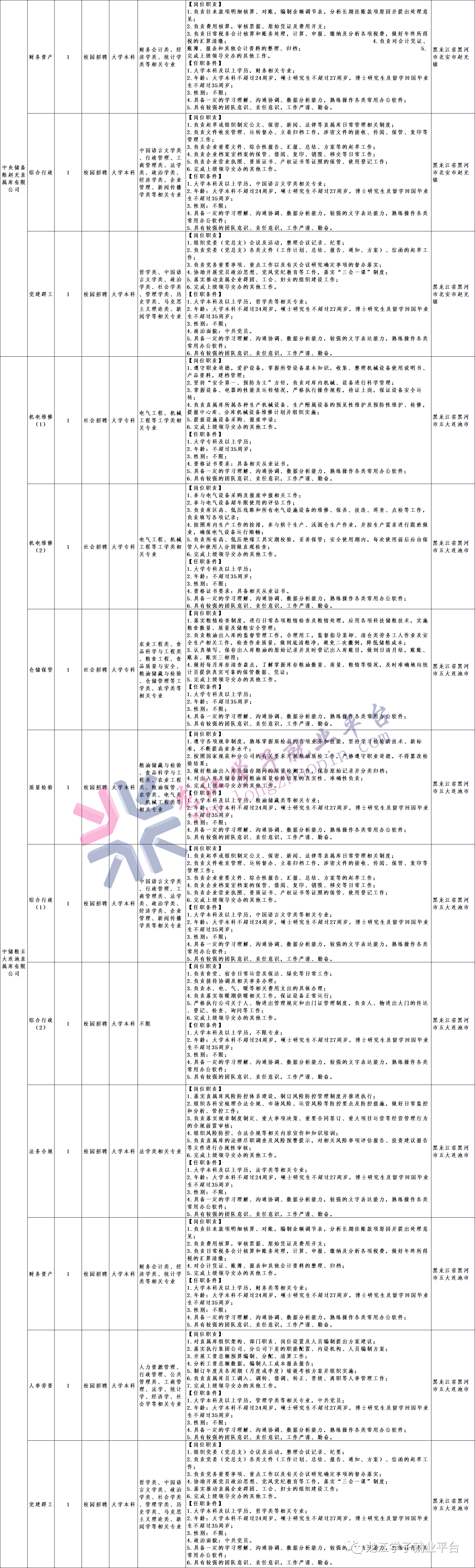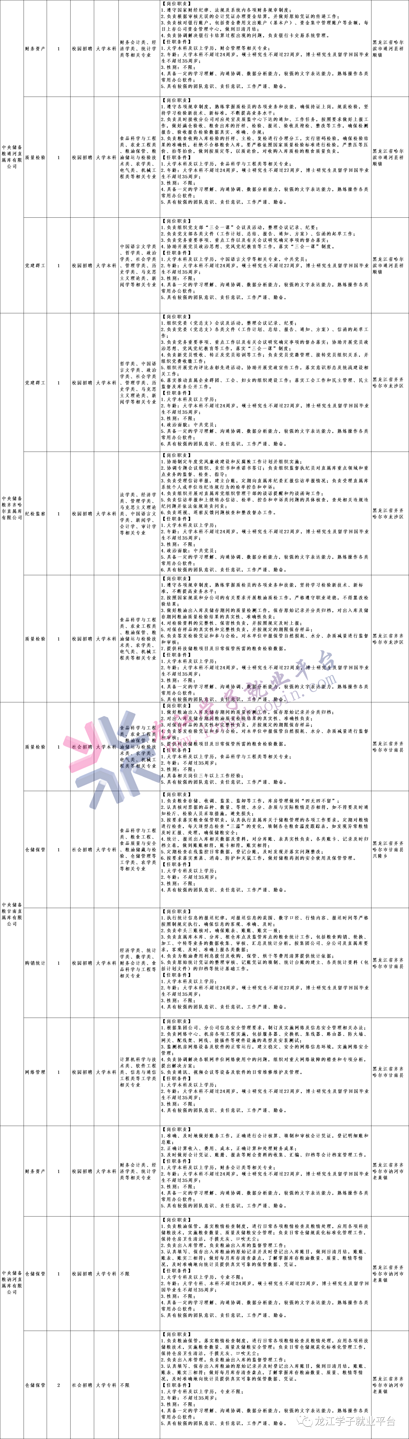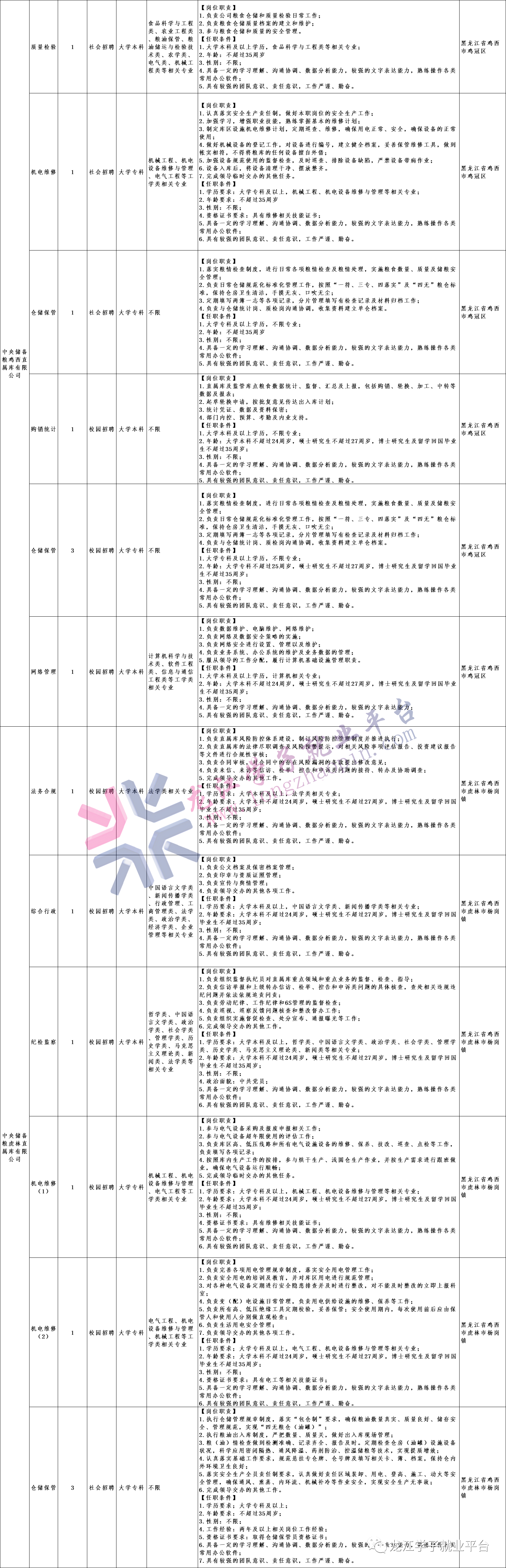 本次招聘为中储粮集团黑龙江分公司辖区直属企业岗位,包括仓储保管、质量检验、购销统计、综合行政、财务资产、党建群工、人事劳资、纪检监察、机电维修、网络管理、法务合规、基建管理等岗位。