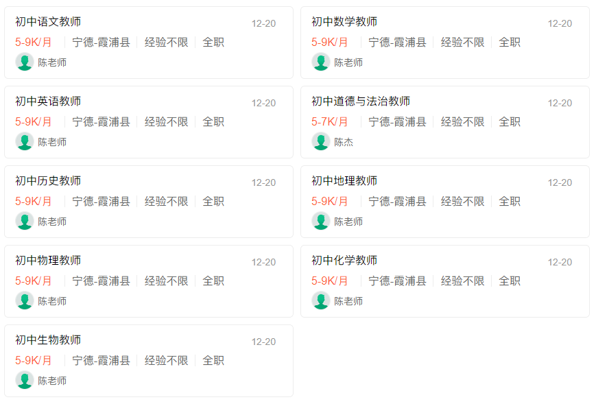 福建霞浦县树人实验学校招聘教师