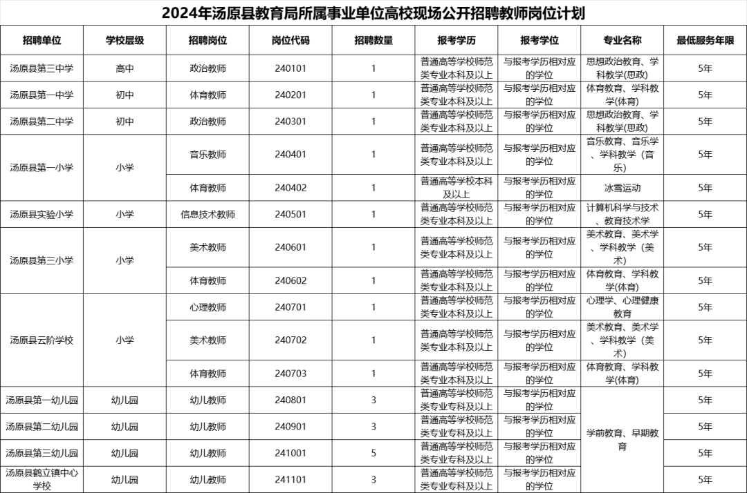 本次计划招聘教育局所属事业单位教师25名,具体招聘单位、岗位、人数、条件等情况详见《2024年汤原县教育局所属事业单位高校现场公开招聘教师岗位计划》(附件1)。