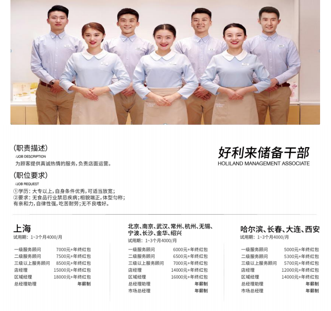 好利来储备干部 工作城市: 上海, 北京, 南京, 杭州, 武汉, 长沙, 宁波, 常州, 无锡, 金华, 绍兴, 福州, 嘉兴,南通,哈尔滨