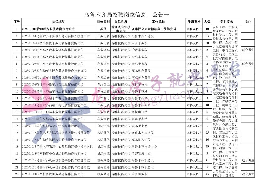 一 中国铁路乌鲁木齐局集团有限公司根据企业发展需要,拟招聘普通高等院校本科及以上学历毕业生,现将有关事项公告如下: