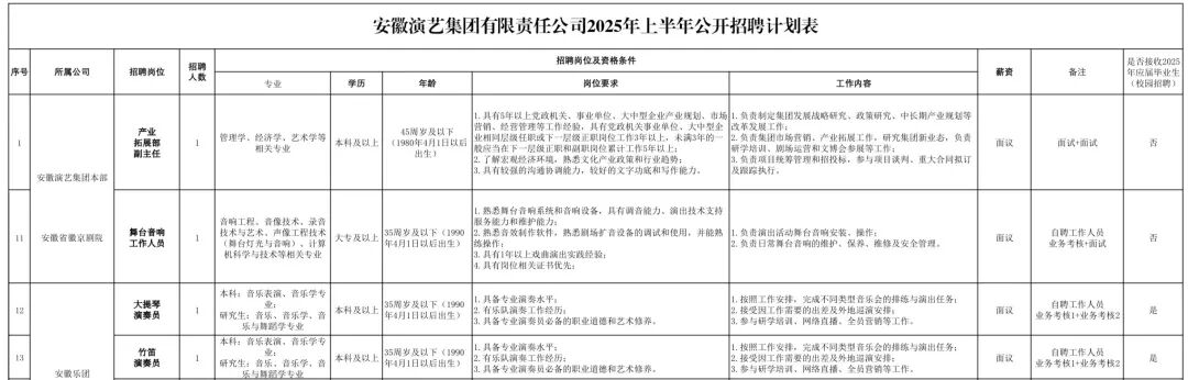 安徽演艺集团有限责任公司2025年上半年公开招聘