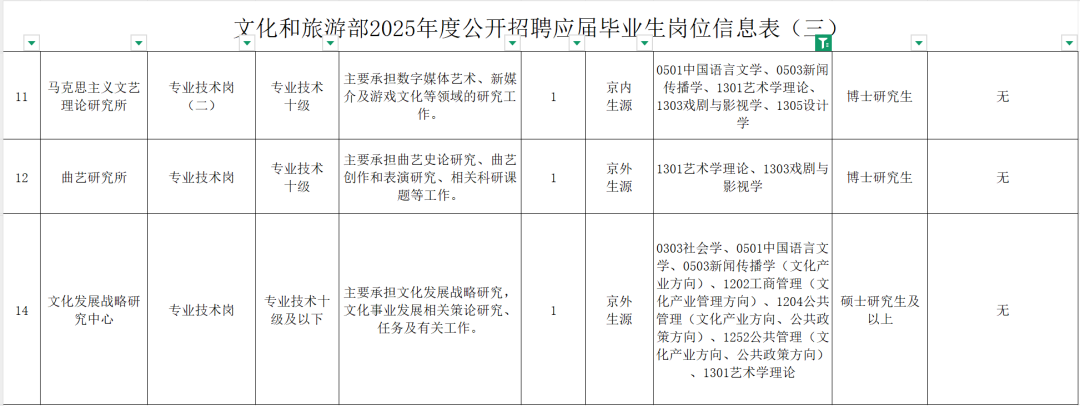 文化和旅游部直属事业单位2025年度公开招聘应届毕业生公告(三)