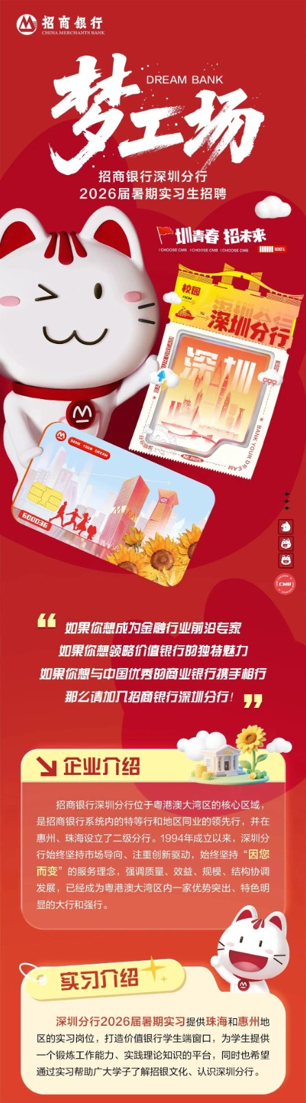 招商银行分行2026届暑期实习生招聘公告