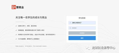 点击“学生登录”,输入手机号(用户名)和密码进入简历编辑页面编辑完善简历。