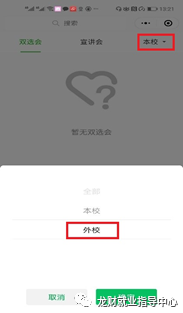 1、从本校就业小程序登录,进入“活动-双选会”,右上角选择“校外”,选择本场双选会。