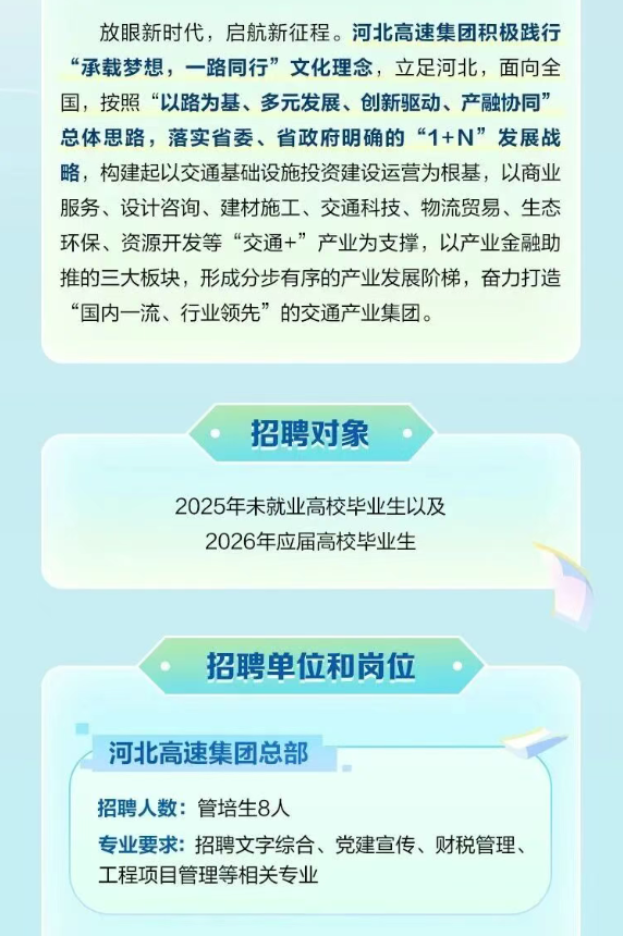 河北高速公路集团有限公司2026届秋季校园招聘公告