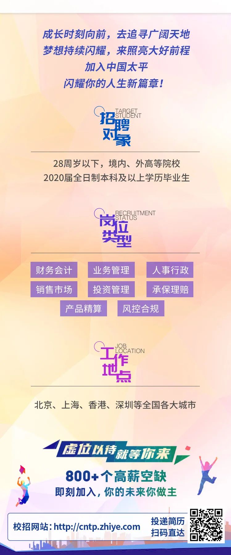 招聘信息 | 中国太平2020年春季校园招聘信息公告
