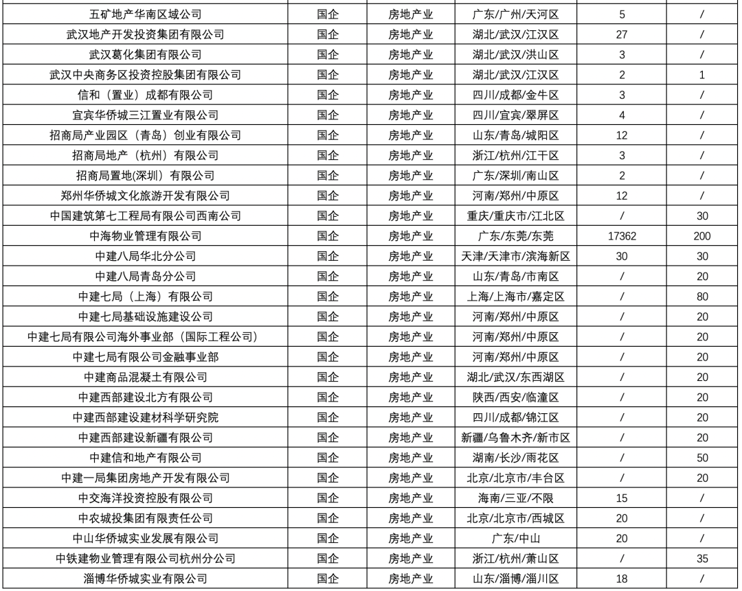 特别精选:房地产企业招聘情况汇总工作地点遍布全国各热门城市↓下滑寻找你所意向的岗位吧↓国企单位(点击图片查看详情)