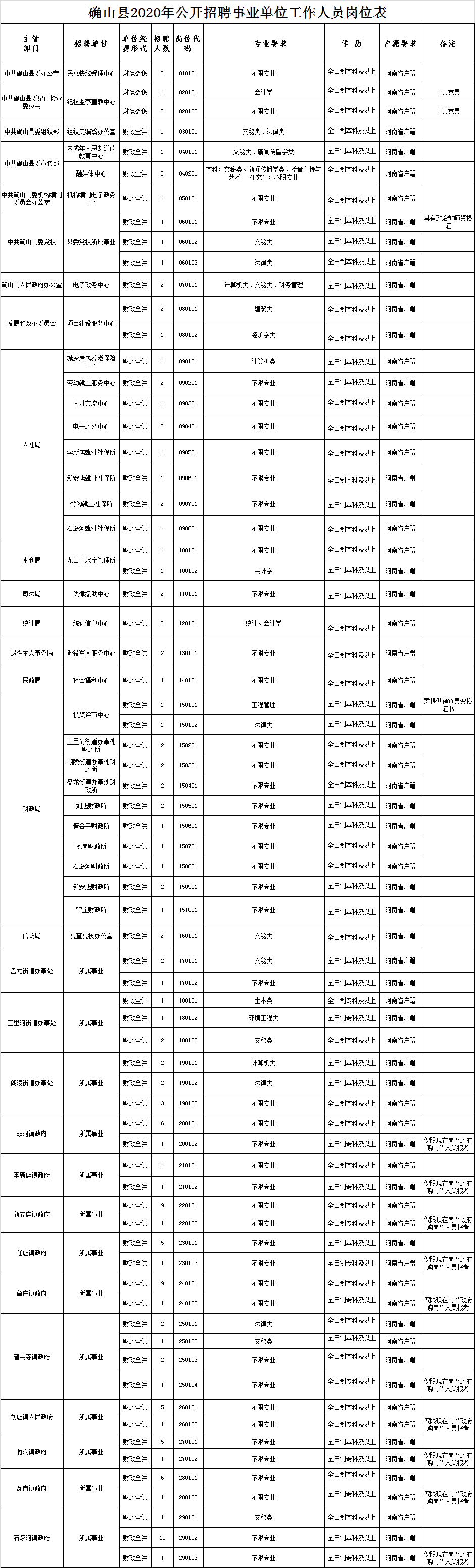 【河南省】2020年驻马店市确山县事业单位招聘考试公告