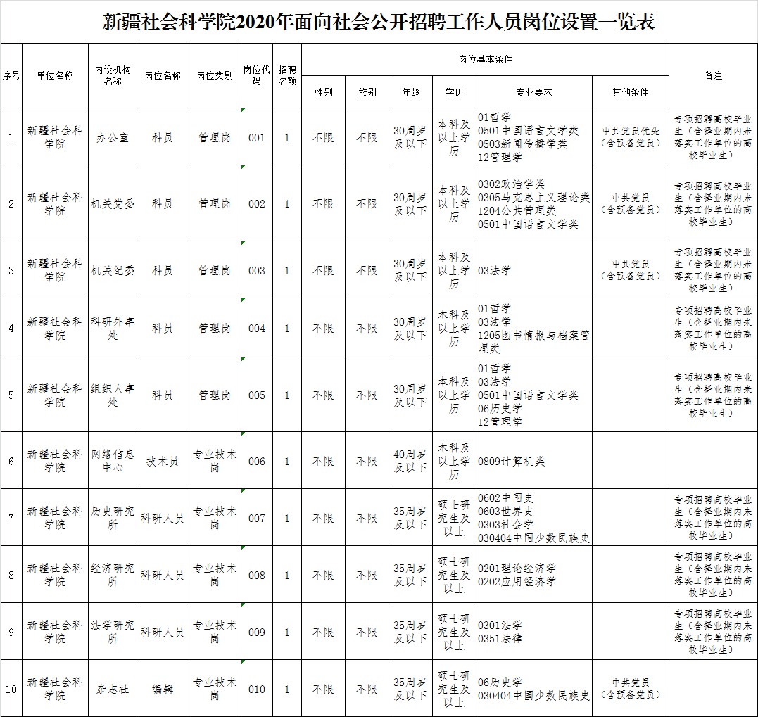 【新疆】2020年新疆社会科学院招聘事业单位人员公告