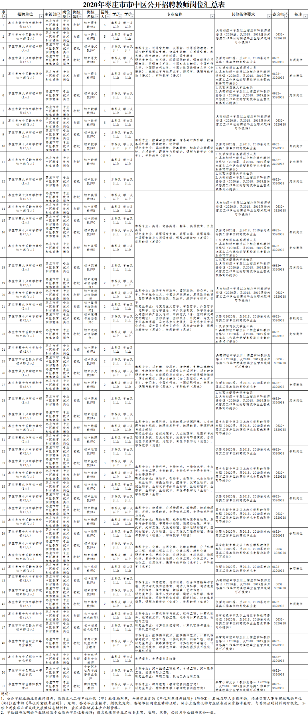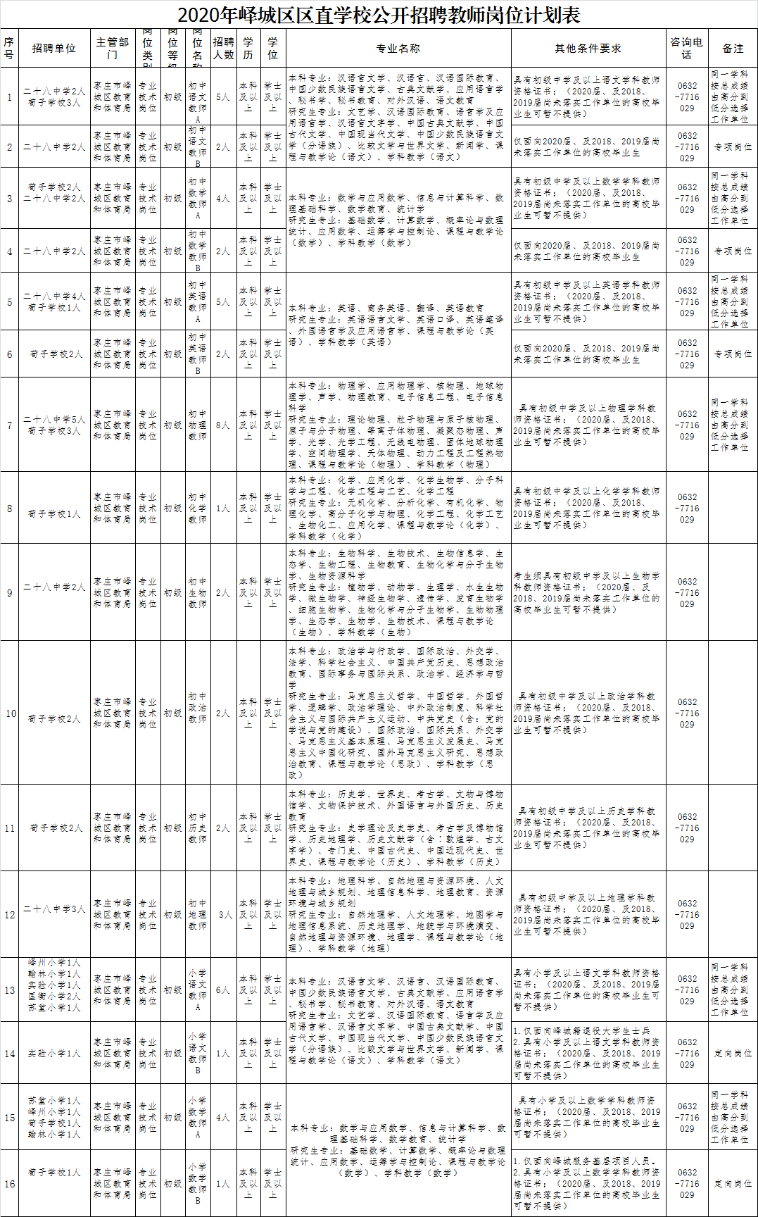 【山东省】2020年枣庄市峄城区区直学校招聘教师公告