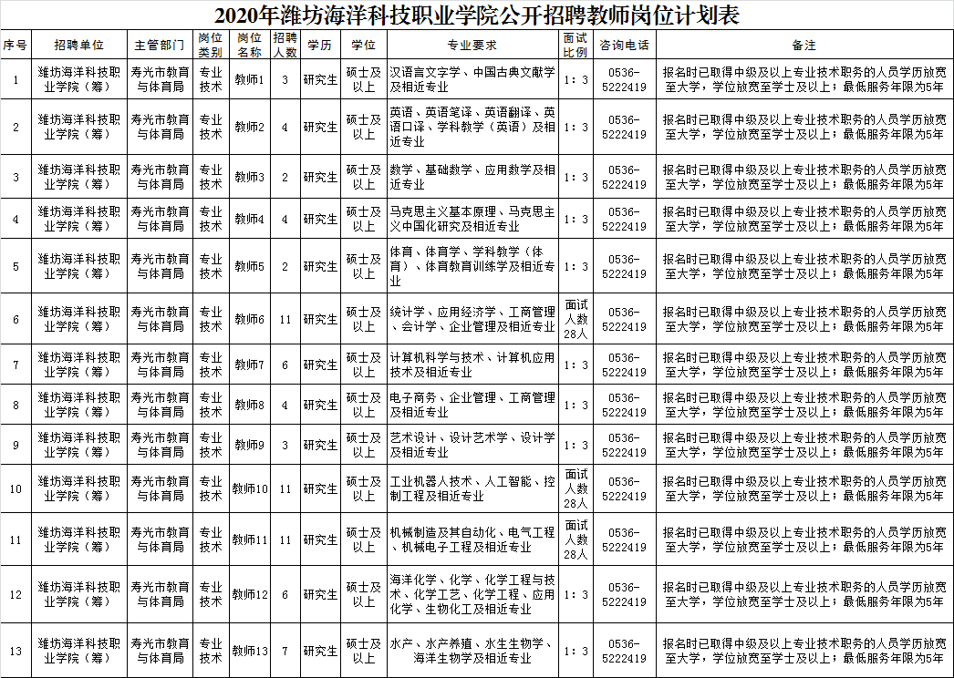【山东省】2020年山东潍坊海洋科技职业学院(筹)招聘教师公告