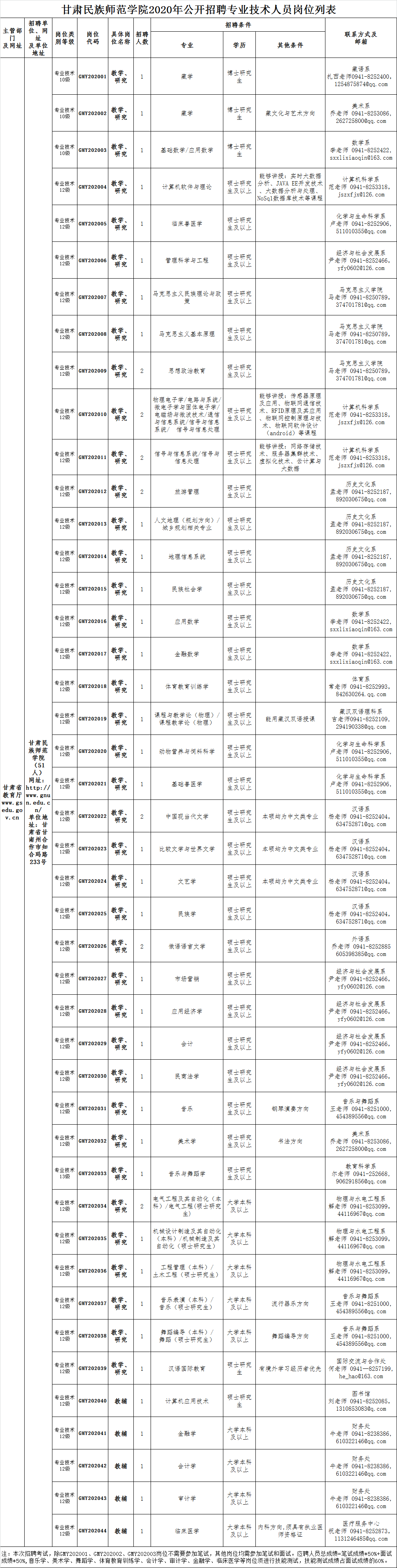 【甘肃省】2020年甘肃民族师范学院招聘专业技术人员公告