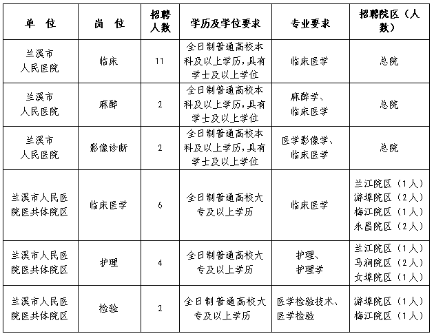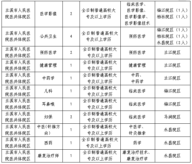 【浙江省】2020年金华兰溪市人民医院医共体带编招聘医学(医药卫生)类专业应届毕业生公告