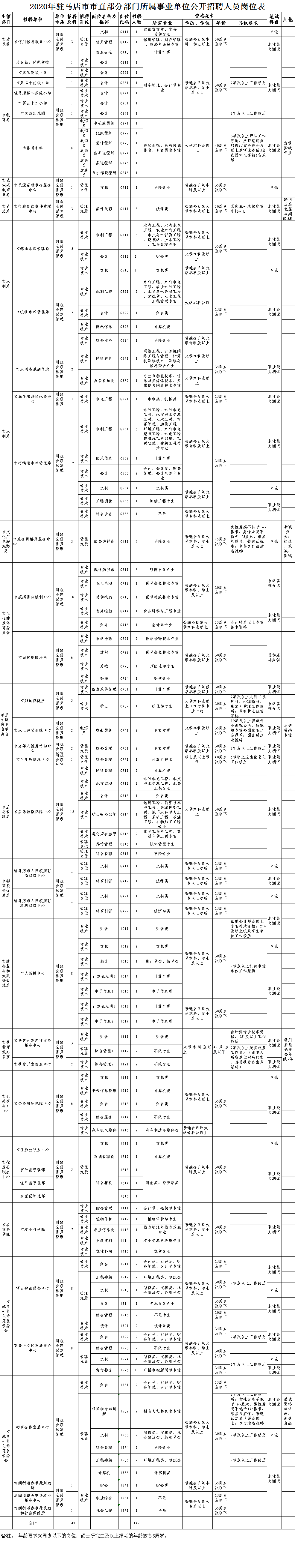 【河南省】2020年驻马店市直事业单位招聘考试公告