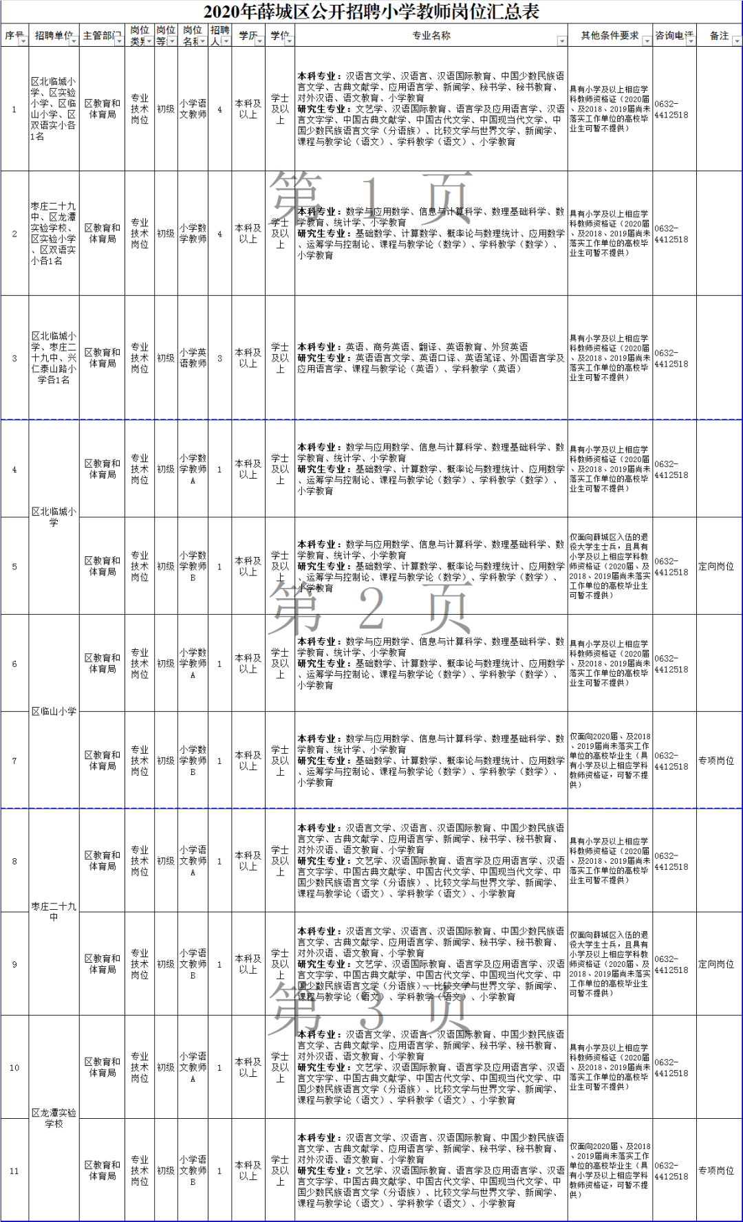 【山东省】2020年山东省枣庄市薛城区招聘小学教师公告