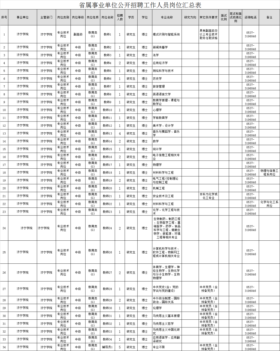 【山东省】2020年济宁学院招聘公告(博士研究生)