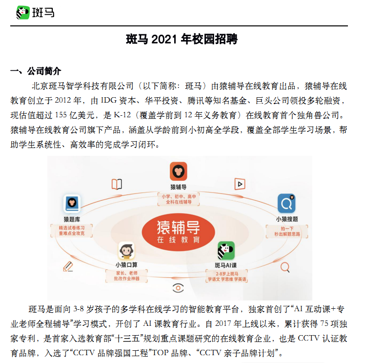专场招聘会【专业不限】北京斑马智学科技有限公司