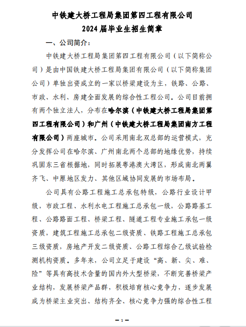 线下专场【建筑学、土木工程、无机非金属、汉语言文学】中铁建大桥工程局集团第四工程有限公司