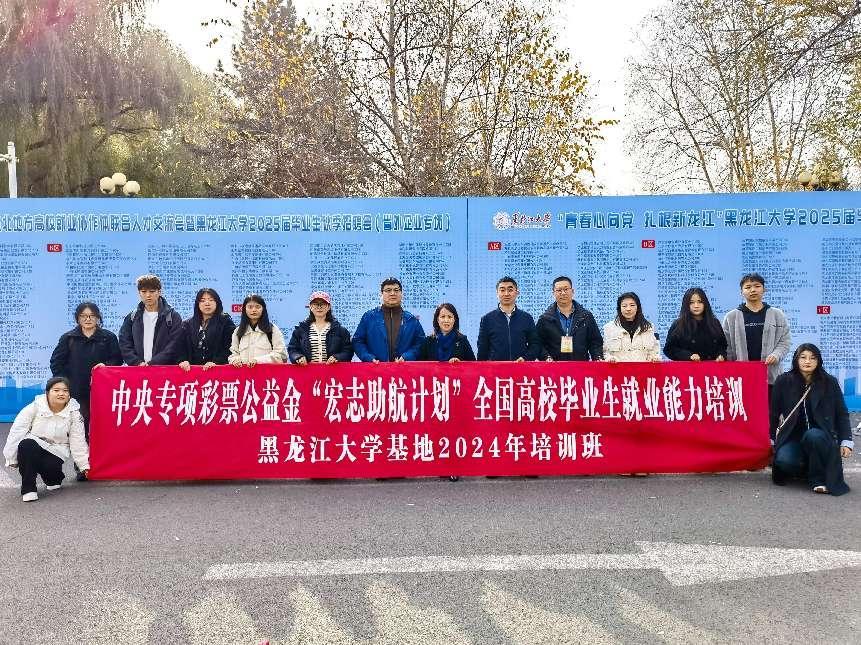 10月26日,牡丹江师范学院招生就业处带队学校2024年度“宏志助航”就业能力提升培训班学员赴中央专项彩票公益金“宏志助航计划”黑龙江大学培训基地,参加由黑大主办的“青春心向党