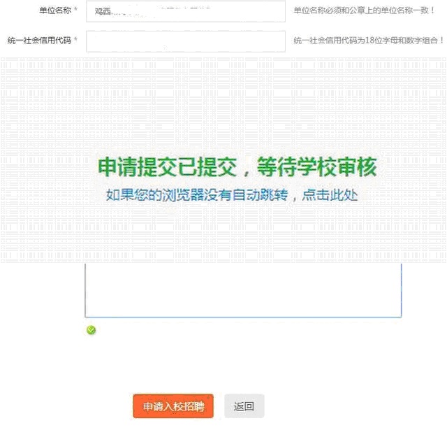 1.企业资质审核通过后,首先需要选择入驻高校联盟的学校名称,在搜索框内输入“齐齐哈尔高等师范专科学校”,然后点击搜索;然后点击“申请入住”。待我校审核通过后即可自行发布职位招聘信息。