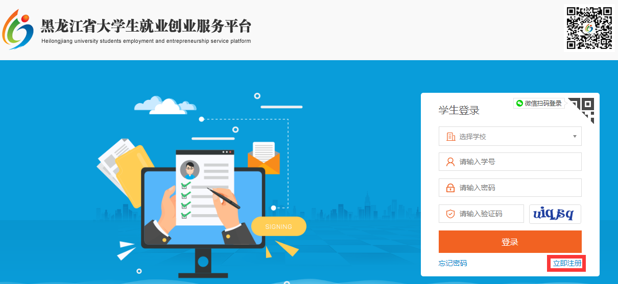 打开黑龙江省大学生就业创业服务平台,http:/,点击我是学生,如下图所示:(使用手机注册可能导致信息显示不全)