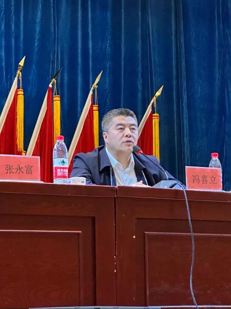 会议最后,学校党委委员、副校长冯喜立发表重要讲话。他向富林公司对学校实习、就业工作的支持表示衷心的感谢,希望校企加强深度合作,实现协同育人。他对即将实习和面临就业的学生们提出要求,希望大家树立正确就业观,先就业再择业、边锻炼边提高,为未来发展打好基础、练就本领;希望大家始终保持永不懈怠的精神状态和勇往直前的奋斗姿态,立足岗位脚踏实地,用心用情干事创业,成就自己的远大理想,实现自己的人生价值。
