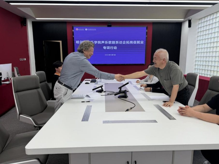 王鸿俊与石家庄学院乐达国际艺术学院院长郝志明、常务副院长李翔宇,教学副院长李宝勇,声乐教研室主任赵泽昊,教学秘书长、办公室主任刘静娴召开座谈会。会上,郝志明详细介绍了石家庄学院乐达国际艺术学院建设发展和创作演出情况,并表示希望未来加强与学院的交流合作,在学生就业实习实践方面广泛拓展合作渠道,进一步推动两院之间互促共进、实现双赢。王鸿俊向石家庄学院乐达国际艺术学院领导的热情接待表示感谢,并介绍了哈尔滨音乐学院在办学过程、人才培养、学科建设、艺术实践和毕业生就业创业等方面的工作情况及取得的成绩,表示希望通过本次访企拓岗促就业专项行动,双方进一步加强联系,为毕业生挖掘更多的就业岗位。
