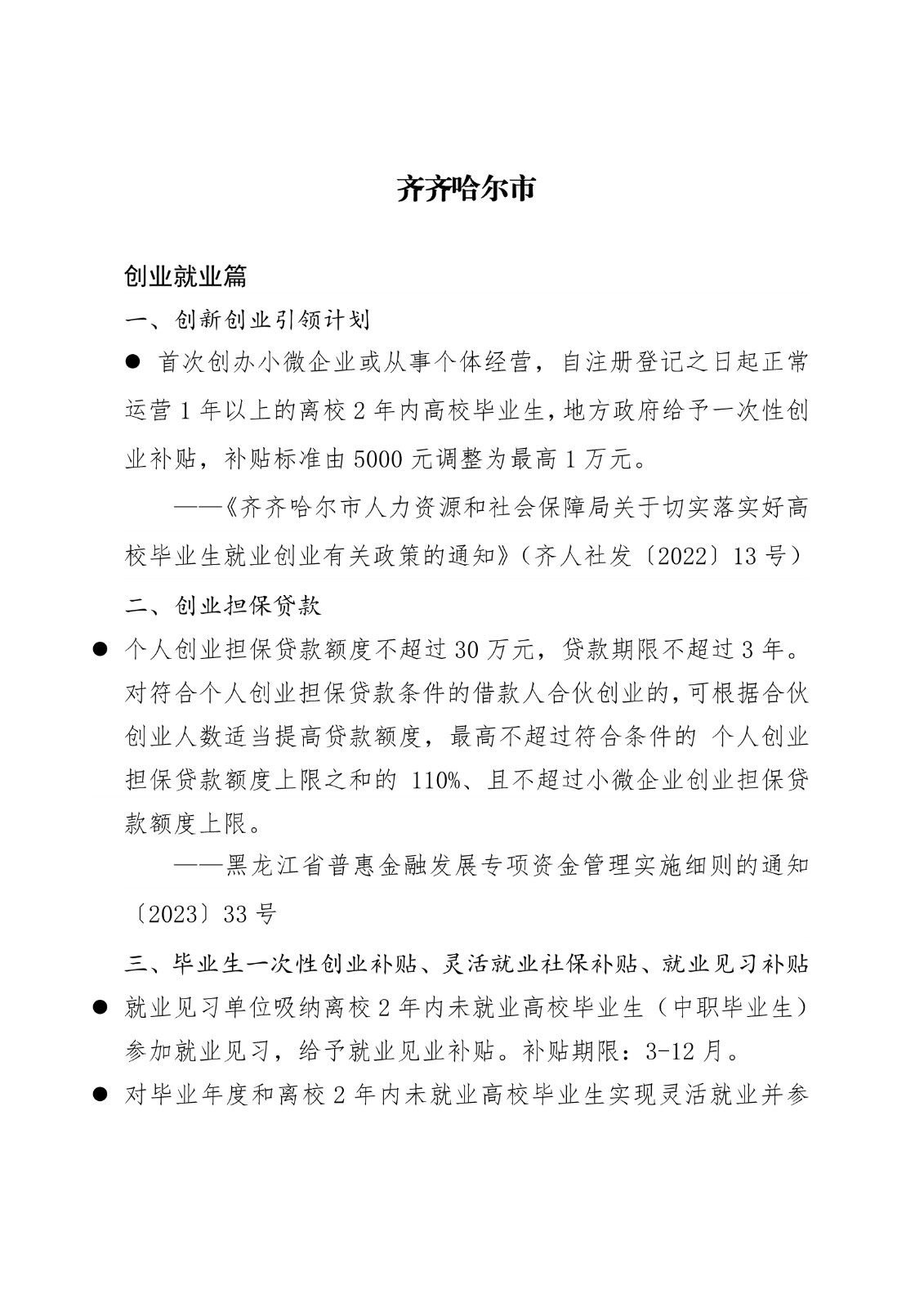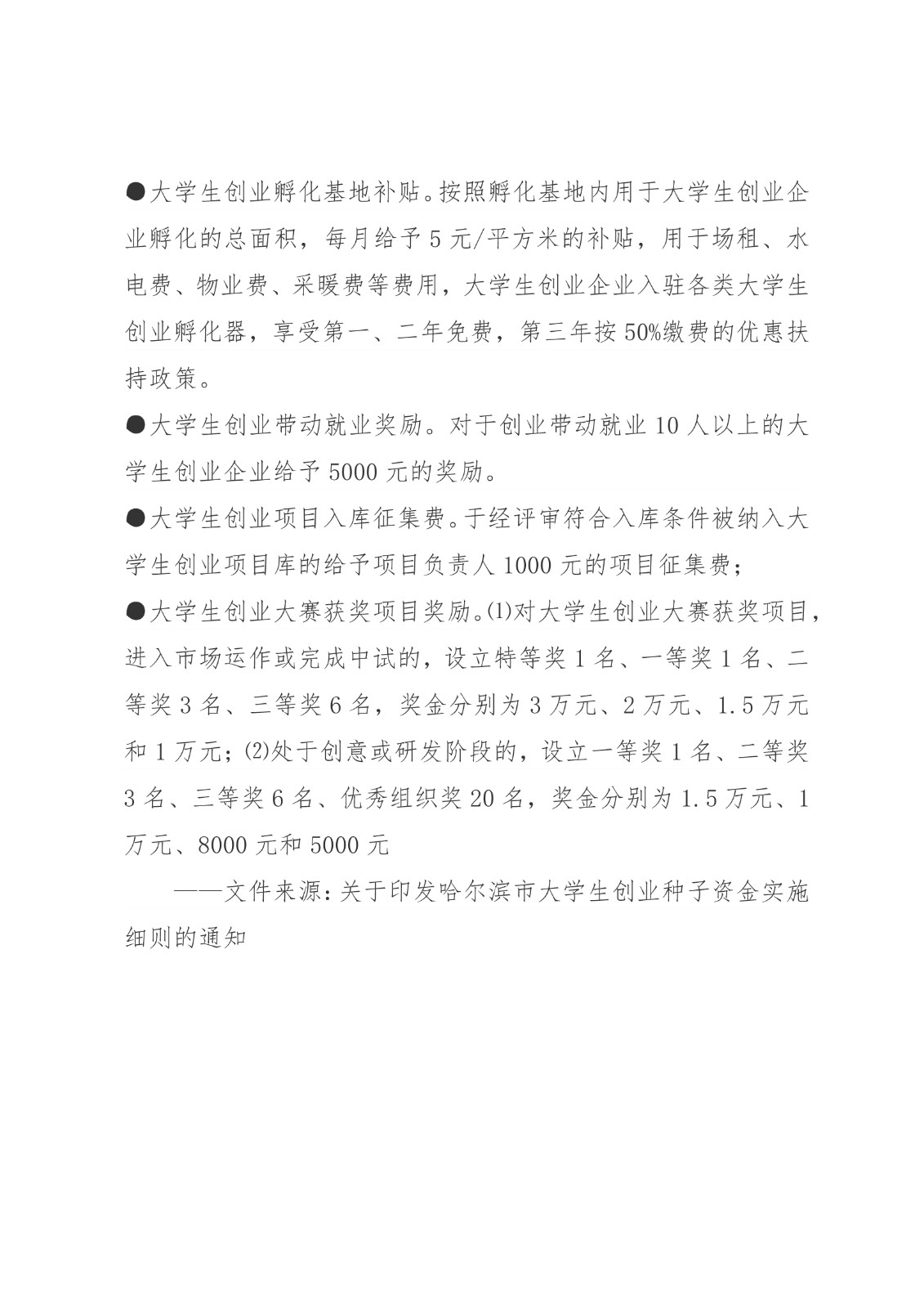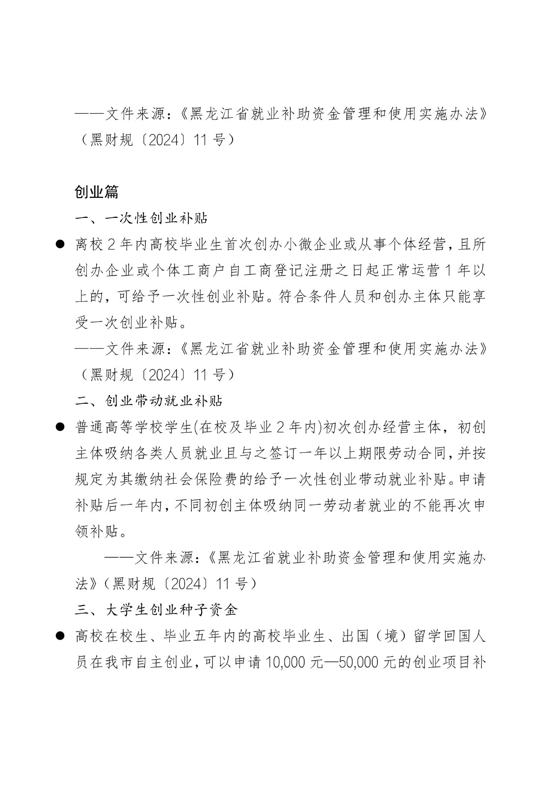 黑龙江省各地市高校毕业生就业创业政策摘录