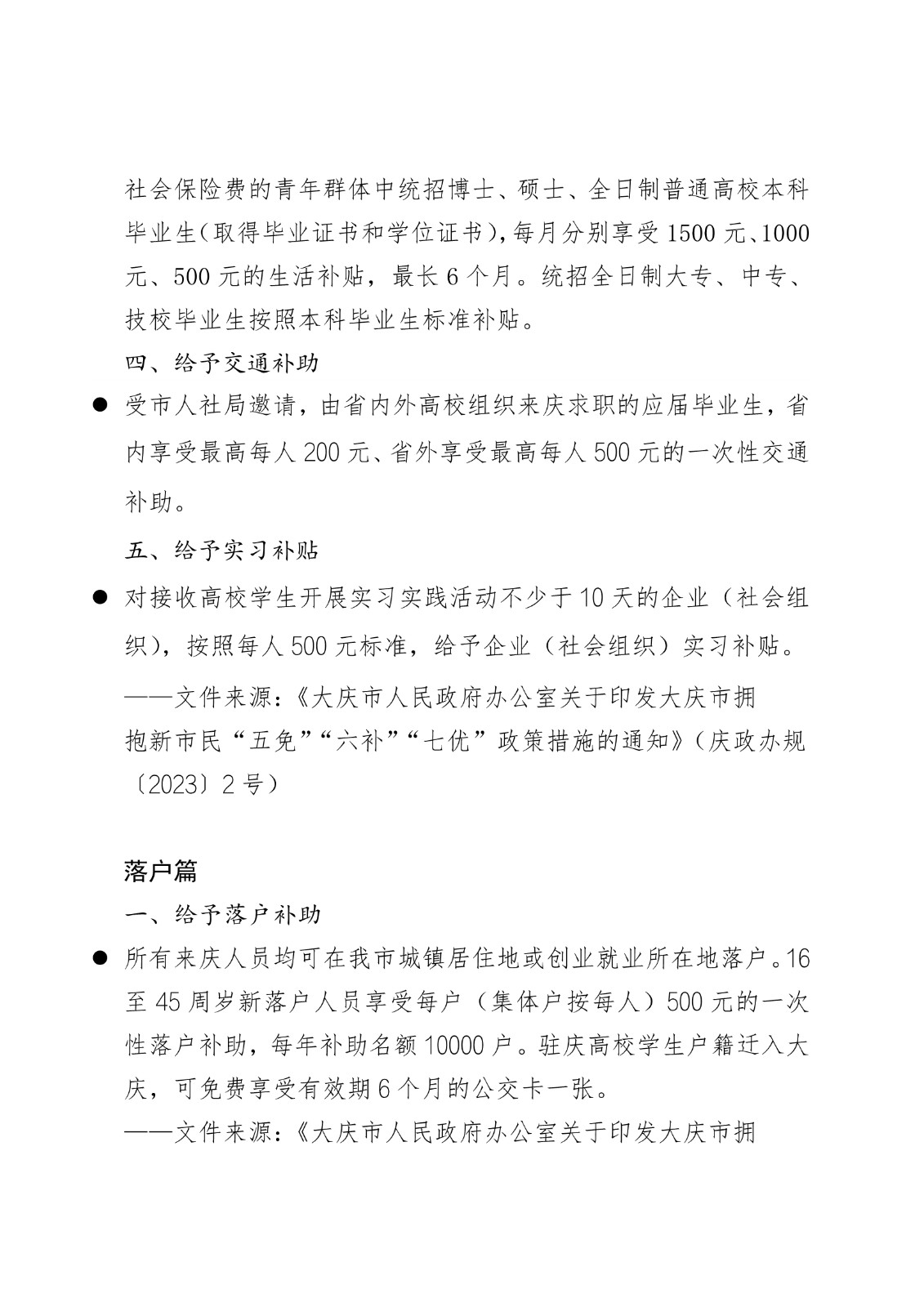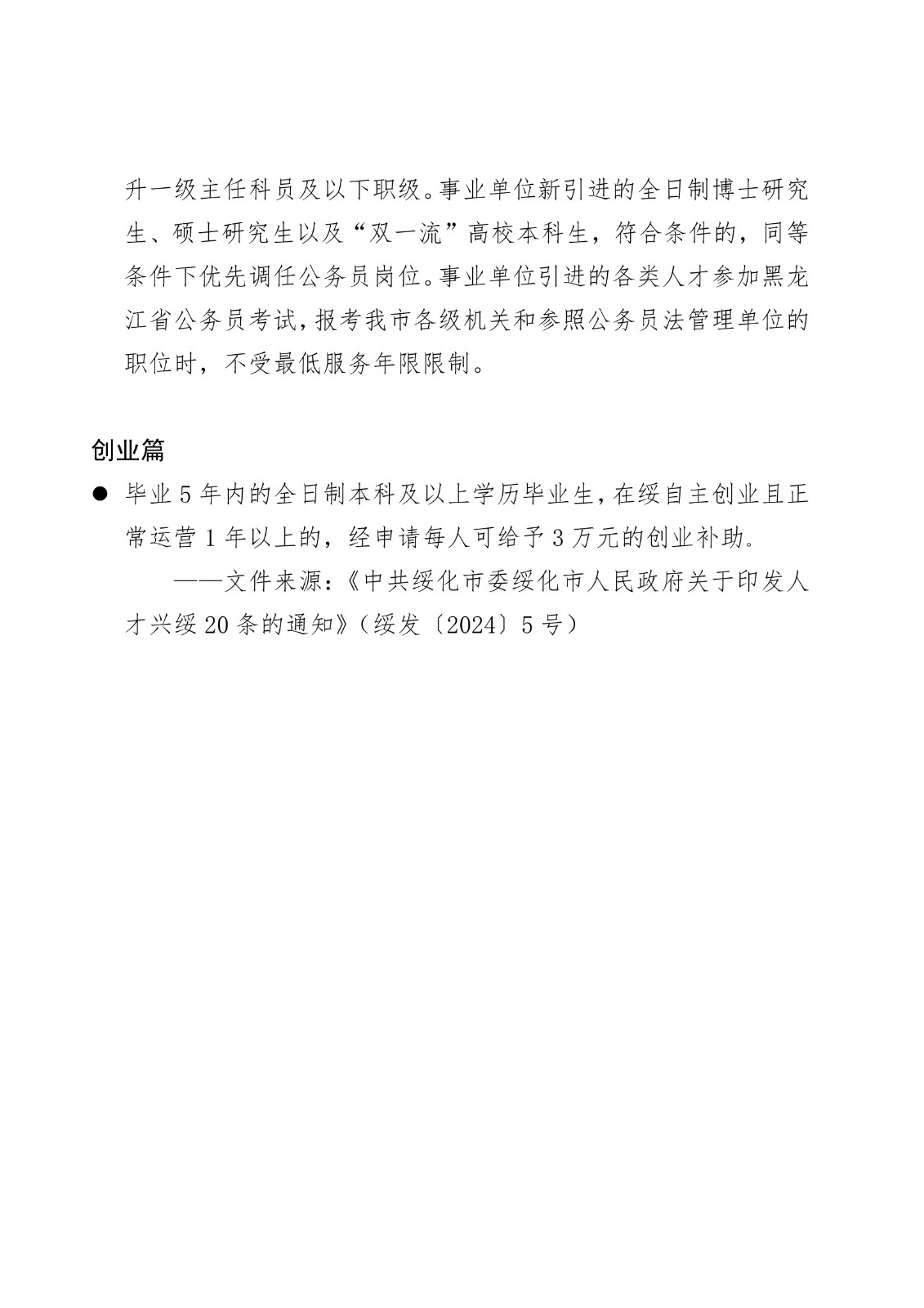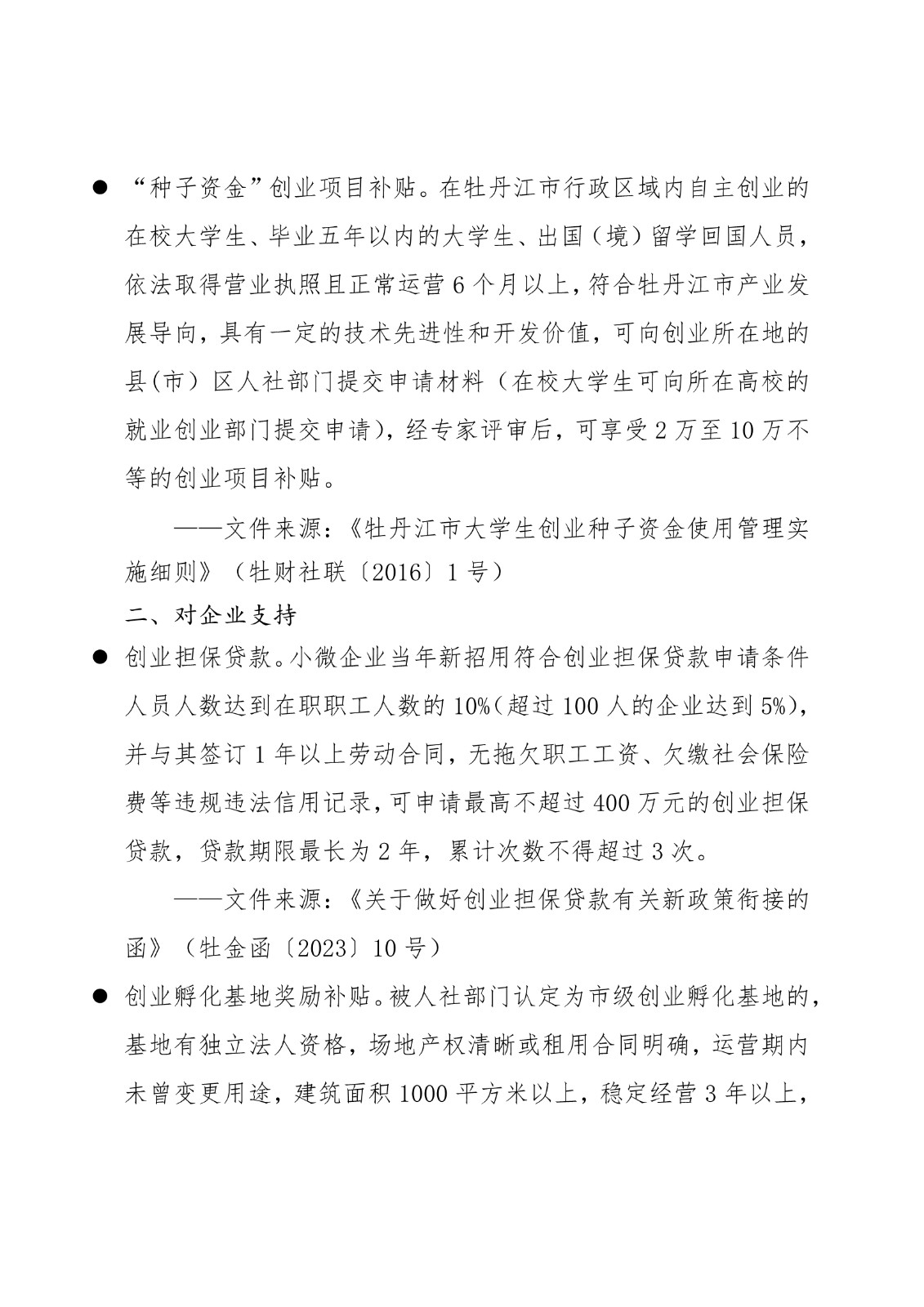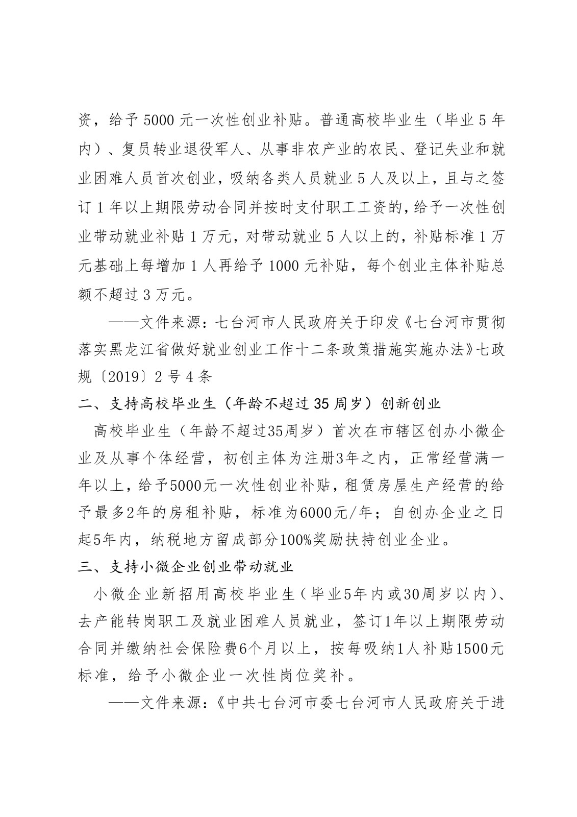 黑龙江省各地市高校毕业生就业创业政策摘录