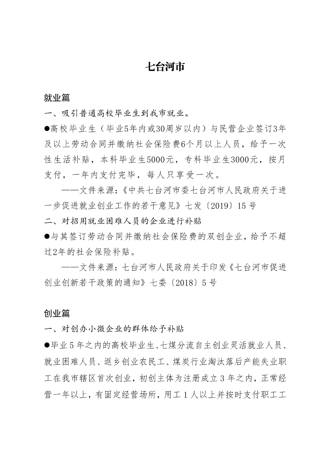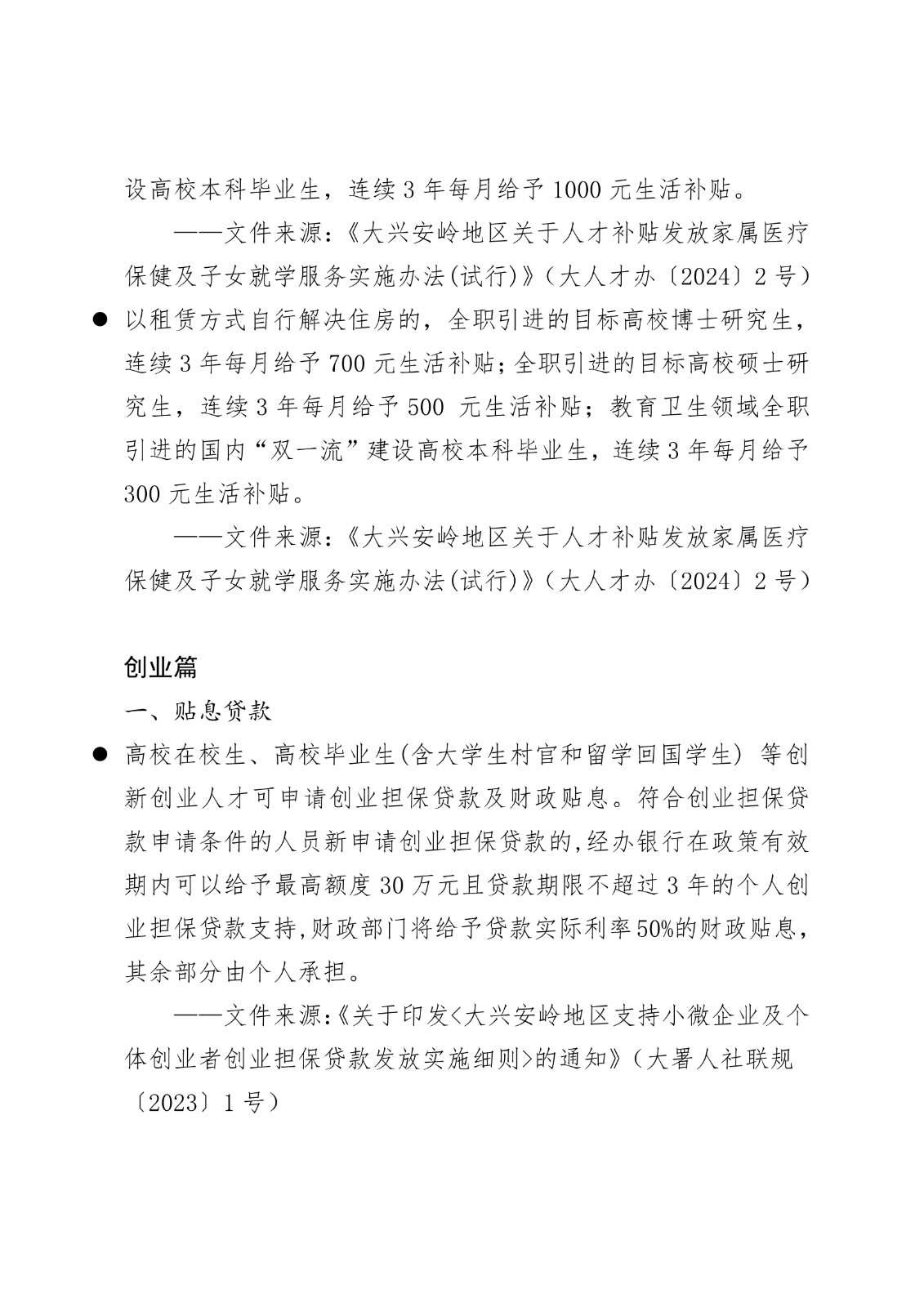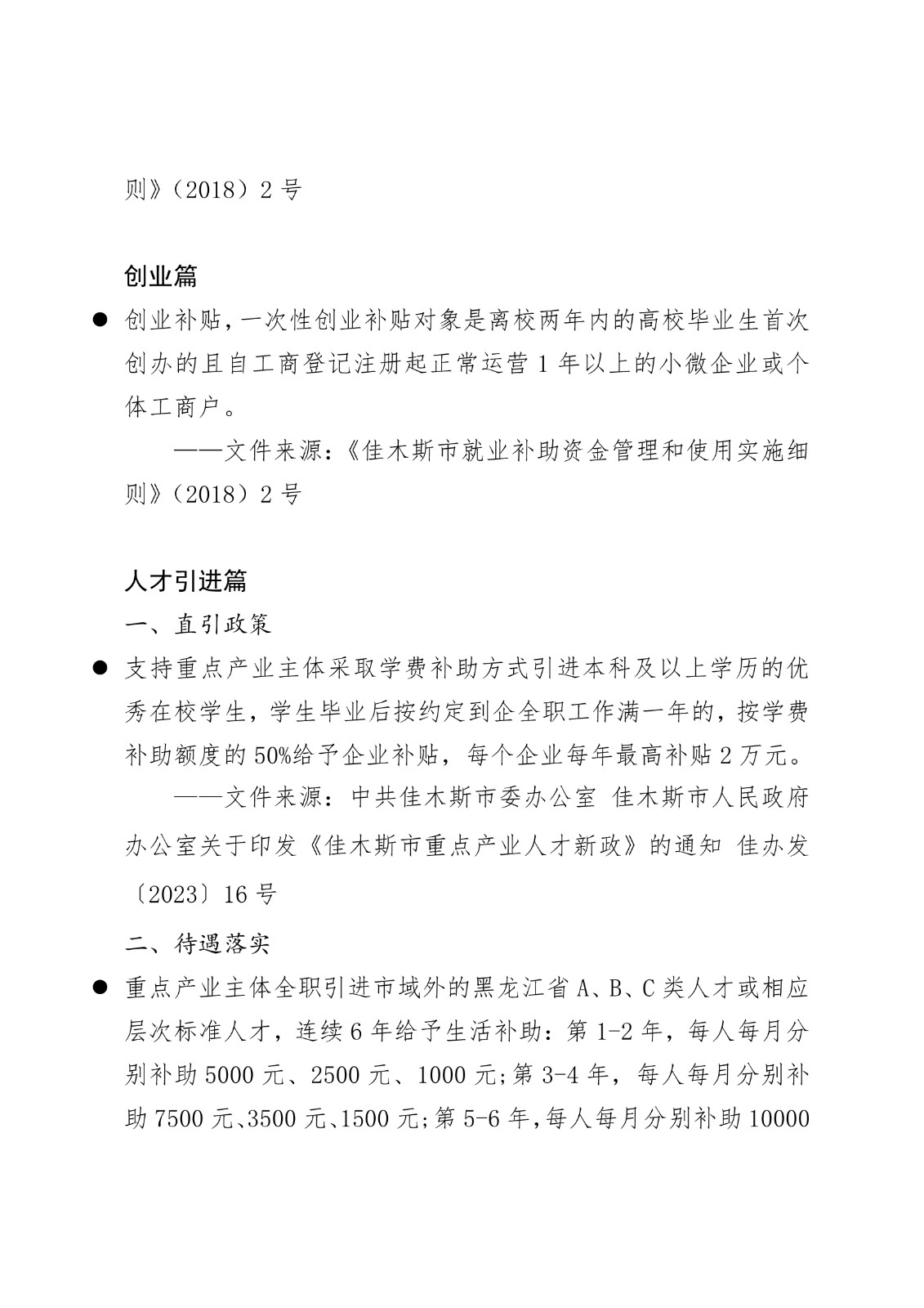 黑龙江省各地市高校毕业生就业创业政策摘录.pd