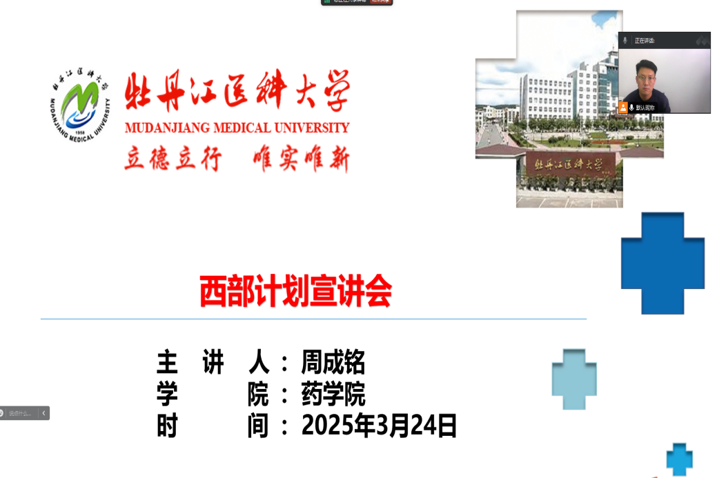 为积极响应国家西部计划号召,鼓励广大药学院学子投身西部建设,奉献青春力量,药学院于3月24日 成功举办了西部计划宣讲会。此次宣讲会吸引了2025届毕业同学的热情参与。