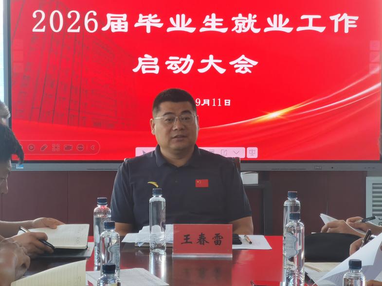 2025年9月11日上午,学校2026届毕业生就业工作启动会在崇德楼6楼会议室召开。校党委副书记王春雷出席会议并讲话。各二级学院、研究生院党总支书记、院长、招生就业处相关同志参会。会议由招生就业处处长刘景祥主持。